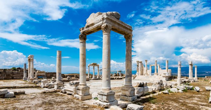 Die antike Stadt Laodikeia, 6 km nördlich von Denizli gelegen, hatte in der Vergangenheit eine wichtige Position, da sie an der Kreuzung der Hauptstraßen lag. Ausgrabungen in Laodikeia, einer der wichtigsten antiken Städte der Region, zeigen, dass die Besiedlung hier ununterbrochen von der Kupferzeit bis ins 7. Jahrhundert v. Chr. bestand. Die Stadt wurde früher auch mit den Namen Rhoas und Diopolis bezeichnet. Die Stadt umfasst eine Fläche von etwa 5 Quadratkilometern. Es wird angenommen, dass die Gründung der Stadt auf das 3. Jahrhundert v. Chr. zurückgeht. An diesem Tag hat der Kommandant II. Es wurde von Seleucus Antiochus für seine Frau Laodice gegründet und sein Name kommt von hier. Die Region wurde später 130 v. Chr. Teil des Römischen Reiches. Das Theater und der monumentale Brunnen gehören zu den wichtigsten historischen Sehenswürdigkeiten der Stadt. Die Stadt, die 494 n. Chr. durch ein großes Erdbeben schwer beschädigt wurde, konnte danach nicht mehr zu ihrer alten Prachtzeit zurückkehren. Die Ausgrabungen in der Stadt dauern noch heute an.